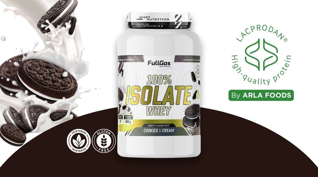 100% Isolate Whey de FullGas es un aislado de proteína de suero de leche formulado con la materia prima Lacprodan® SP-9225 (Arla Foods).