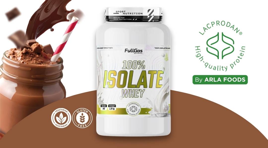 100% Isolate Whey de FullGas es un aislado de proteína de suero de leche formulado con la materia prima Lacprodan® SP-9225 (Arla Foods).
