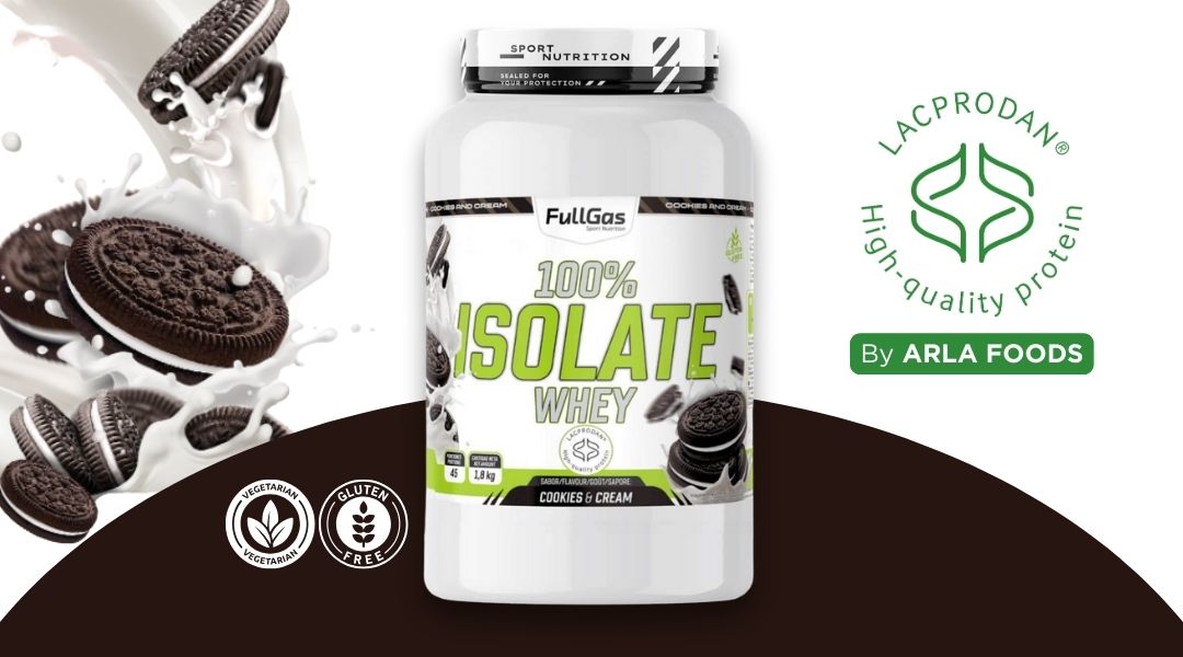 100% Isolate Whey de FullGas es un aislado de proteína de suero de leche formulado con la materia prima Lacprodan® SP-9225 (Arla Foods).