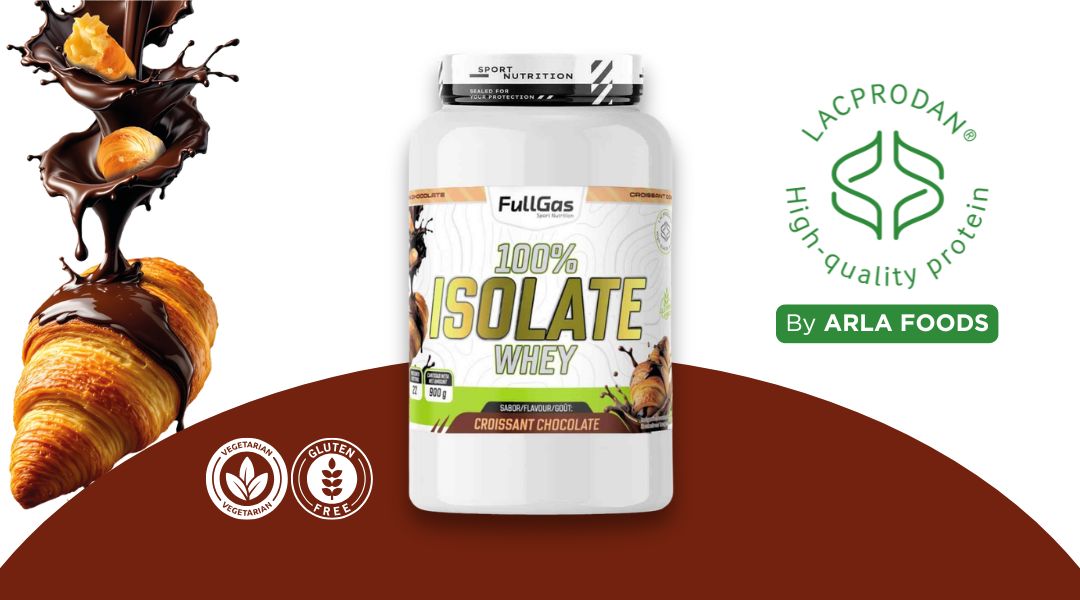 100% Isolate Whey de FullGas es un aislado de proteína de suero de leche formulado con la materia prima Lacprodan® SP-9225 (Arla Foods).