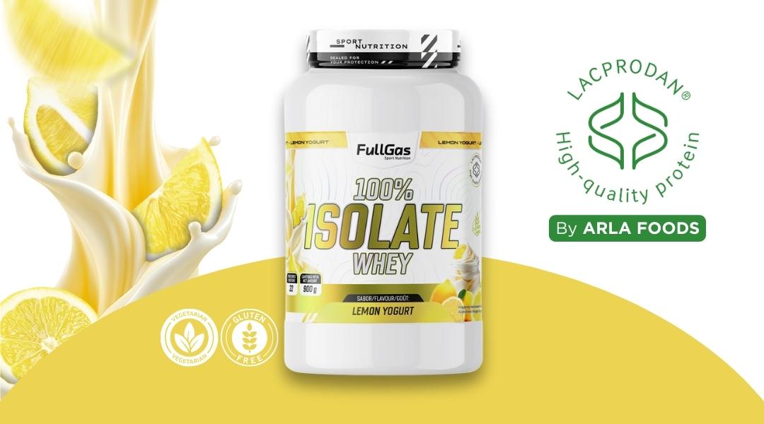100% Isolate Whey de FullGas es un aislado de proteína de suero de leche formulado con la materia prima Lacprodan® SP-9225 (Arla Foods).