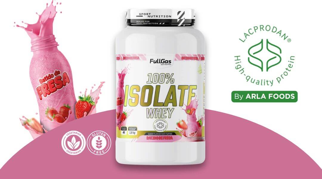 100% Isolate Whey de FullGas es un aislado de proteína de suero de leche formulado con la materia prima Lacprodan® SP-9225 (Arla Foods).