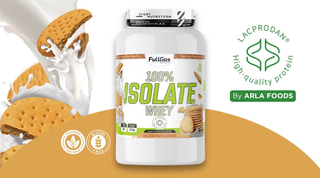 100% Isolate Whey de FullGas es un aislado de proteína de suero de leche formulado con la materia prima Lacprodan® SP-9225 (Arla Foods).