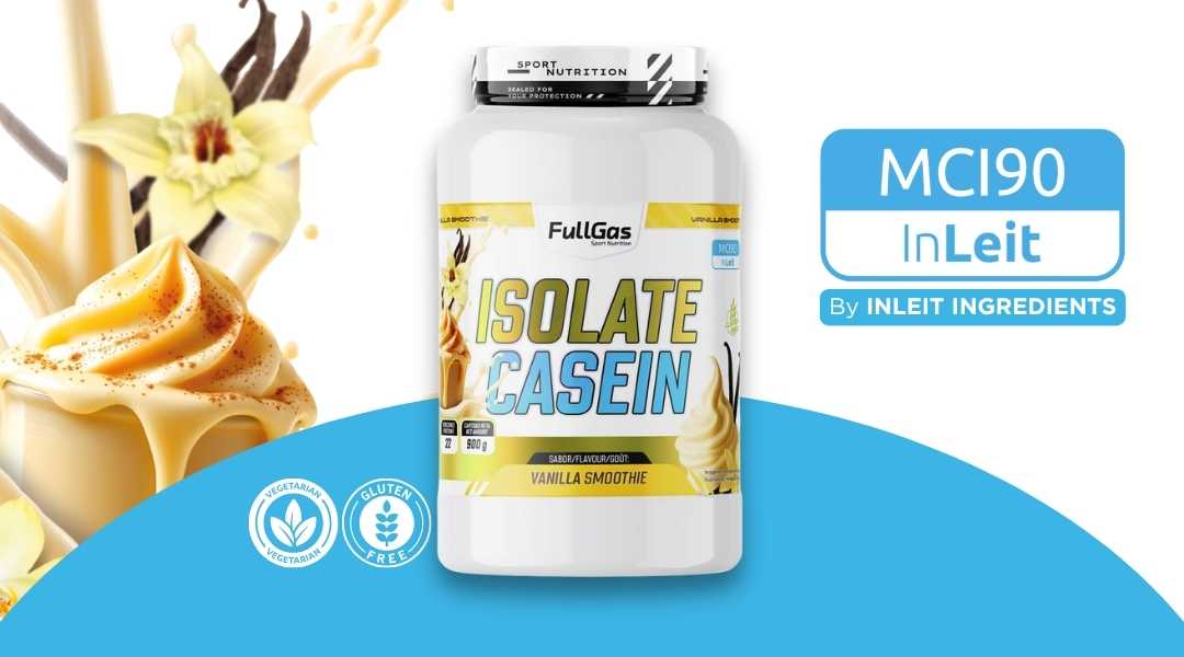 Aislado de caseína micelar nativa (InLeit MCI90) obtenida de leche gallega y microfiltrada en frío. Alto contenido en proteínas, bajo en grasas, sin azúcares añadidos, sin gluten y 100% vegetariano.