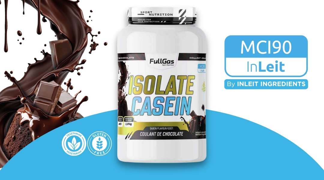 Aislado de caseína micelar nativa (InLeit MCI90) obtenida de leche gallega y microfiltrada en frío. Alto contenido en proteínas, bajo en grasas, sin azúcares añadidos, sin gluten y 100% vegetariano.