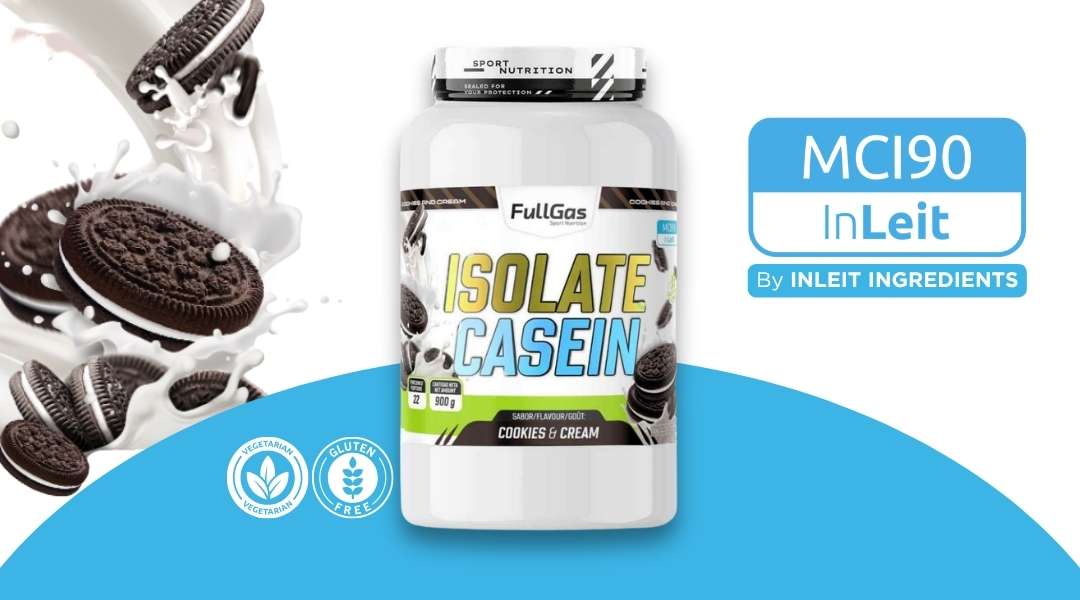 Aislado de caseína micelar nativa (InLeit MCI90) obtenida de leche gallega y microfiltrada en frío. Alto contenido en proteínas, bajo en grasas, sin azúcares añadidos, sin gluten y 100% vegetariano.