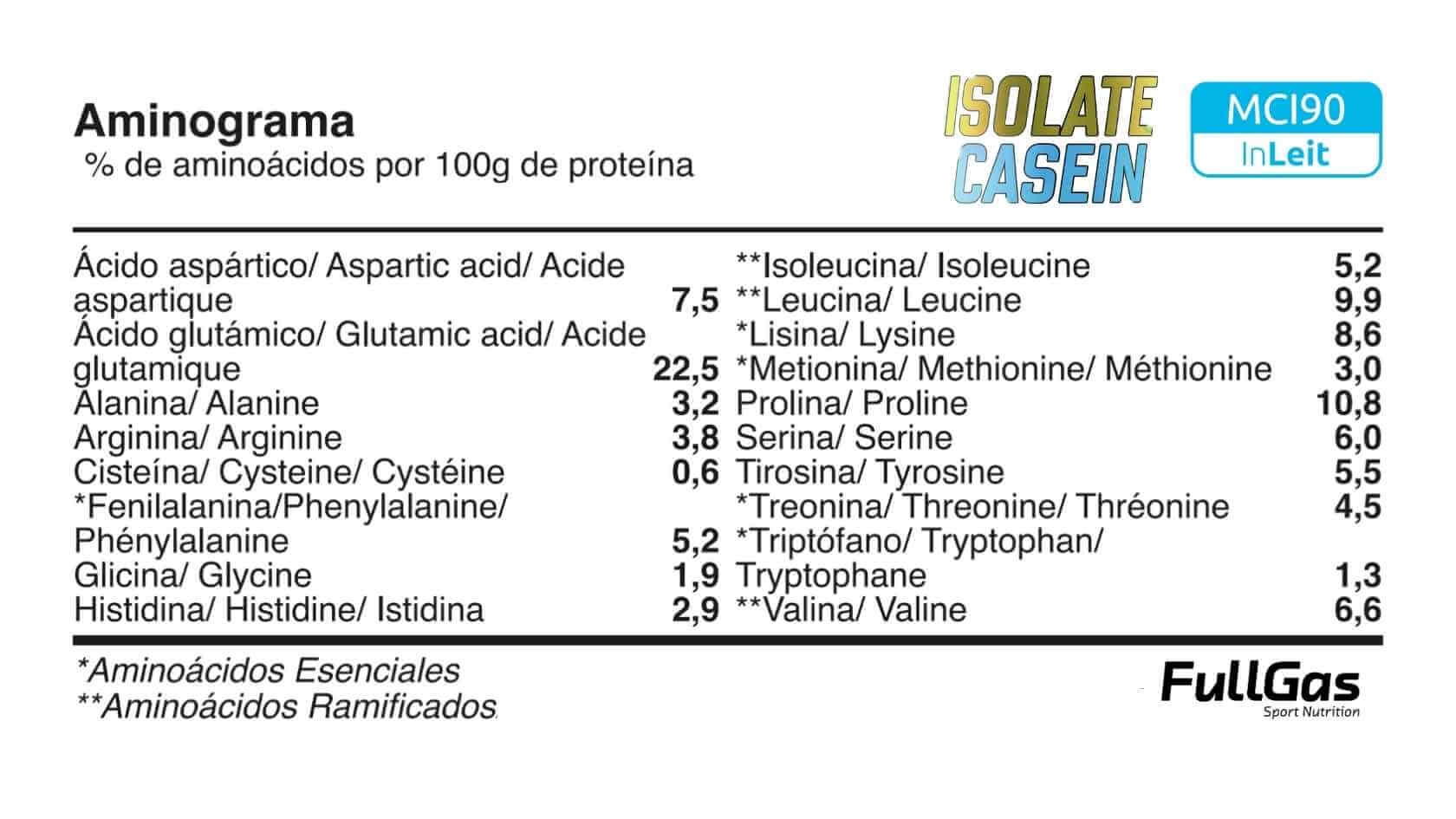 La combinación de aminoácidos esenciales de la Isolate Casein refleja su alto valor biológico: