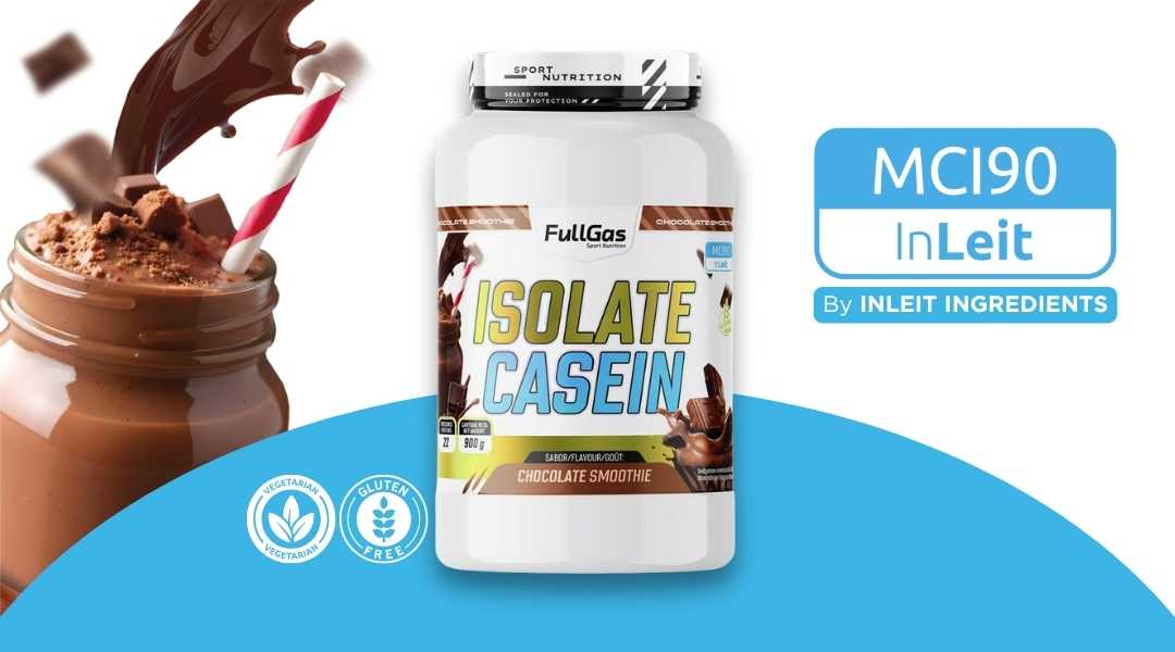 Aislado de caseína micelar nativa (InLeit MCI90) obtenida de leche gallega y microfiltrada en frío. Alto contenido en proteínas, bajo en grasas, sin azúcares añadidos, sin gluten y 100% vegetariano.