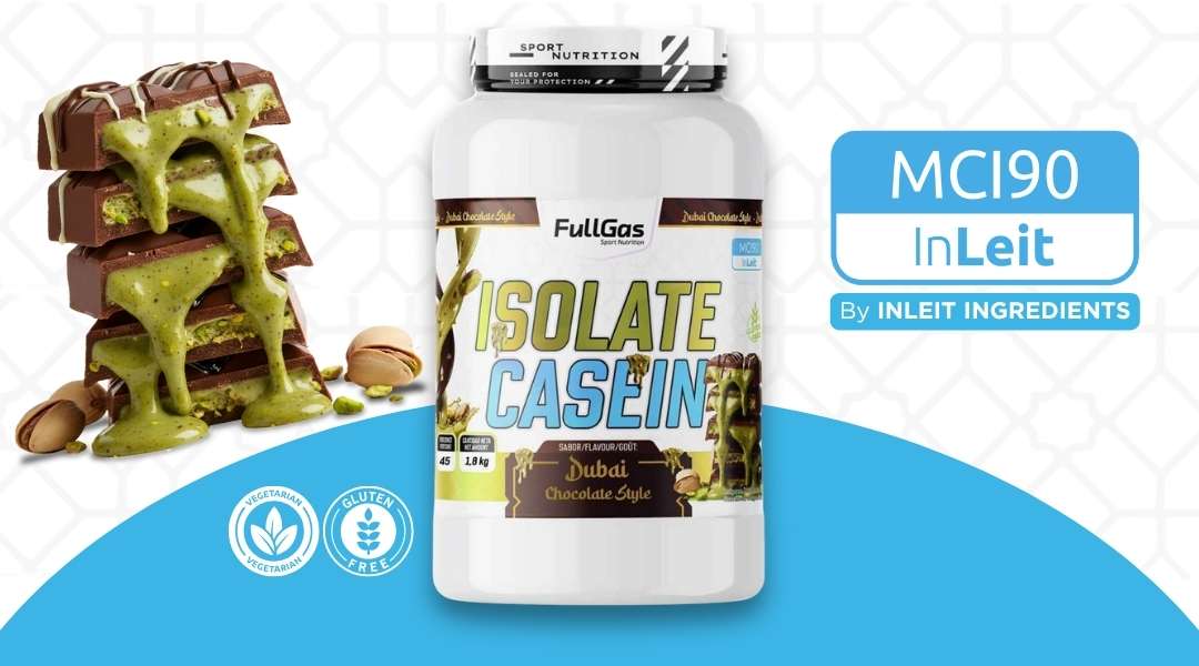 Aislado de caseína micelar nativa (InLeit MCI90) obtenida de leche gallega y microfiltrada en frío. Alto contenido en proteínas, bajo en grasas, sin azúcares añadidos, sin gluten y 100% vegetariano.