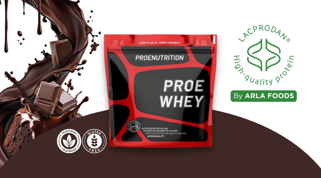 Concentrado de proteína de suero con materia prima Lacprodan® SP-8011 (Arla Foods). Alto contenido en proteínas, fácil disolución, sin azúcar añadido, sin gluten, 100% vegetariano y sin amino spiking