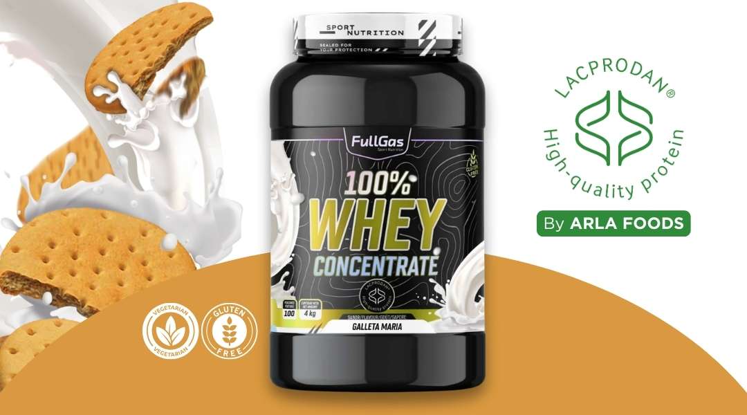 100% Whey Protein de FullGas es un concentrado de proteína de suero de leche formulado con la materia prima Lacprodan® SP-8011 (Arla Foods).