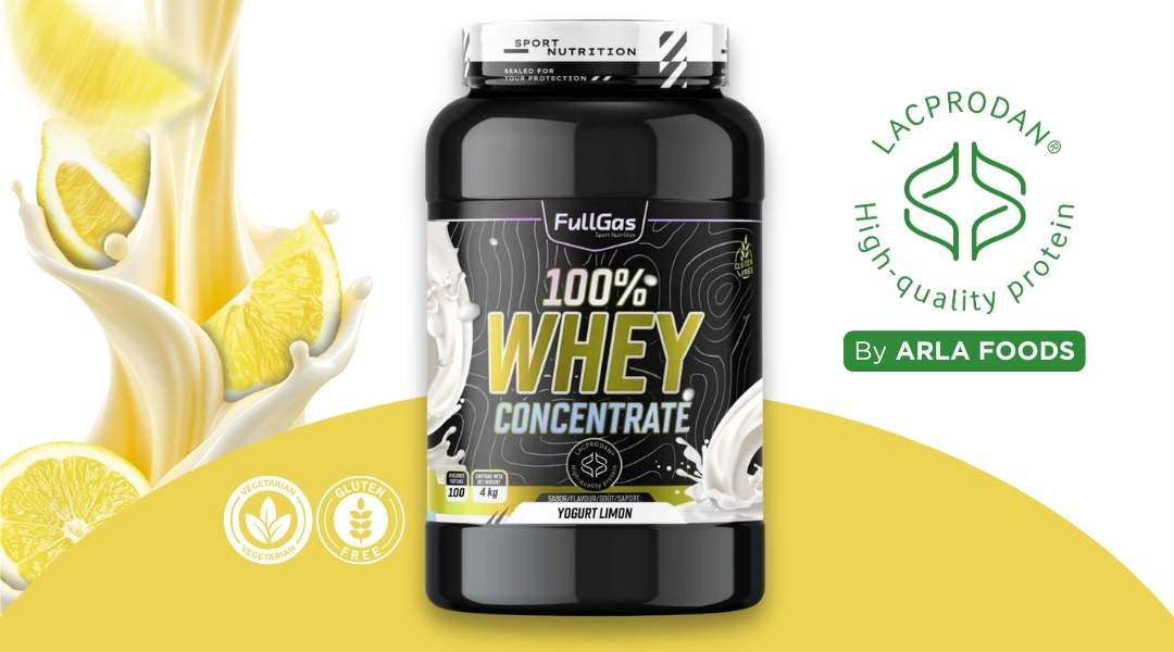100% Whey Protein de FullGas es un concentrado de proteína de suero de leche formulado con la materia prima Lacprodan® SP-8011 (Arla Foods).