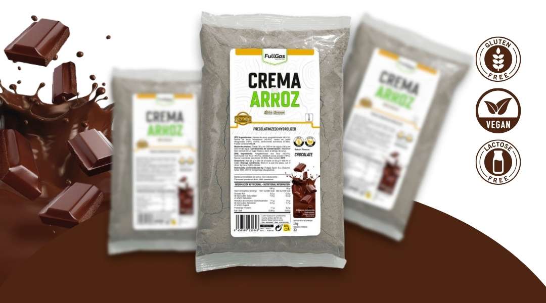 | Ingredientes: Harina de arroz pregelatinizada (40,4%), harina de arroz hidrolizada (40,4%), cacao en polvo desgrasado (18%), aroma, edulcorante (sucralosa). | |||