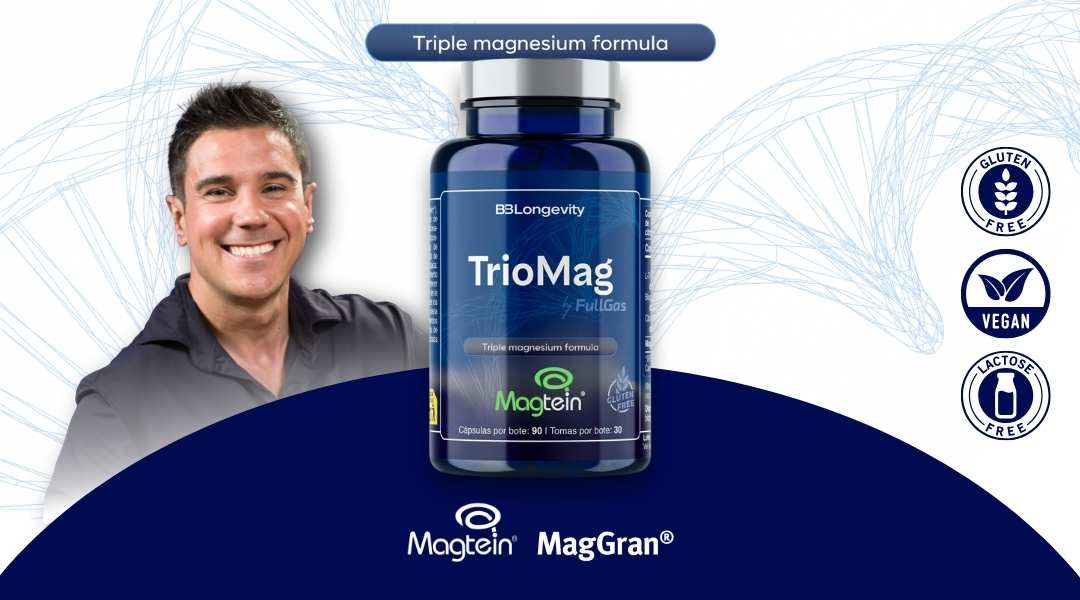 Fórmula avanzada con tres formas de magnesio de alta biodisponibilidad: Treonato (Magtein®) + Bisglicinato + Citrato (MagGran®). 100% vegano y libre de alérgenos.