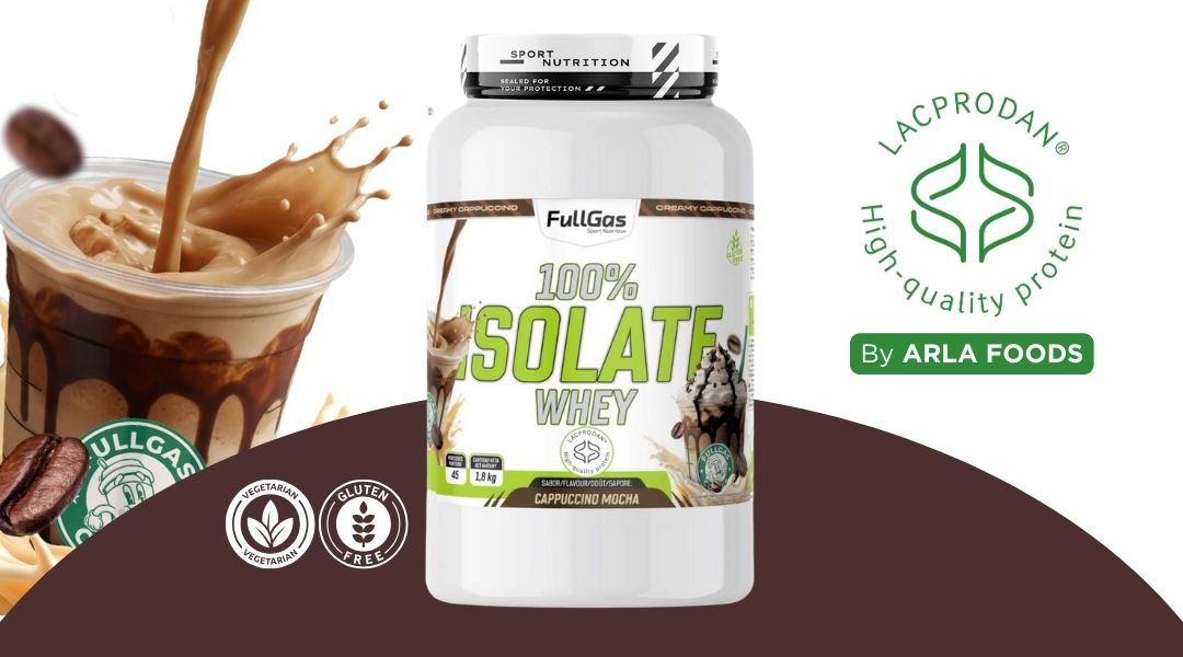 100% Isolate Whey de FullGas es un aislado de proteína de suero de leche formulado con la materia prima Lacprodan® SP-9225 (Arla Foods).
