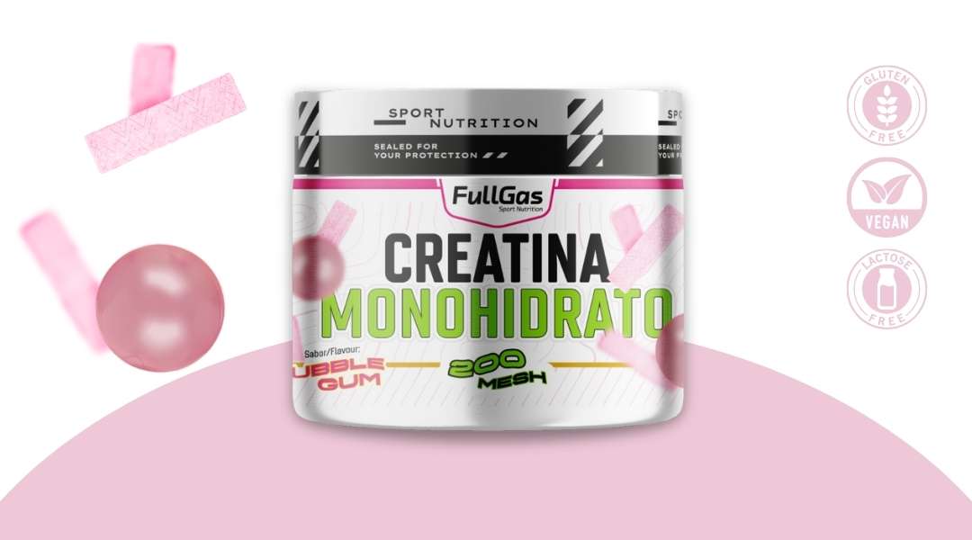 100% Creatina monohidrato 200 Mesh micronizada. Polvo ultrafino para mayor solubilidad. Sin gluten, sin lactosa y sin contaminantes. 100% vegana. Sabor bubblegum.